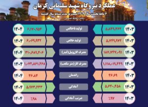 عملکرد شش ماهه نخست سال ۱۴۰۴ نیروگاه شهید سلیمانی کرمان در مقایسه با مدت مشابه سال گذشته